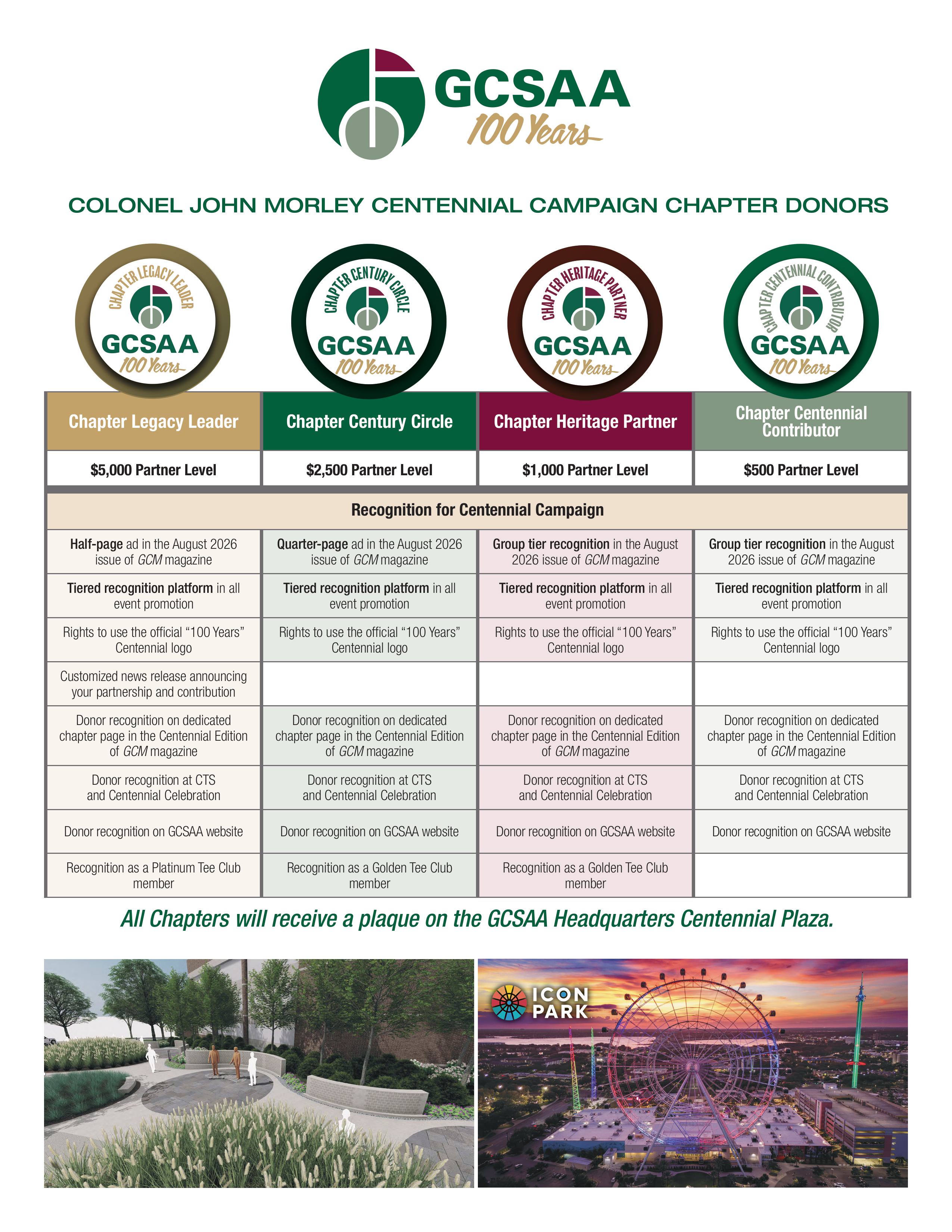 The GCSAA Foundation has embarked on a Centennial fundraising campaign to establish a new endowment honoring GCSAA’s founder, Col. John Morley, with a goal of raising $1 million to fund new and innovative initiatives for the next 100 years.